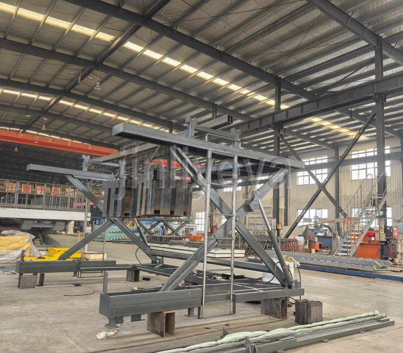 1. 异形台面定制功能:打破传统平面台面局限,可根据异形货物/工件的实际外形、尺寸、重心分布,精准定制弧形、阶梯形、凹槽形、缺口形、不规则多边形等多种形态,完全贴合货物轮廓,杜绝转运过程中滑动、倾斜隐患;台面采用Q235高强度防滑花纹钢板,厚度按需加厚(8-20mm),经退火消应力处理,刚性强、抗变形,适配1-500吨重载需求,可同步加装定位卡扣、防滑挡板等安全部件,进一步提升适配性与安全性,部分场景可根据需求选用不锈钢材质,提升耐腐蚀性能,适配潮湿、多油污工况。